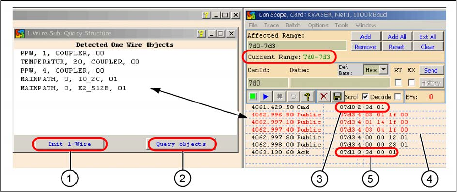 3. Netzwerkfenster: 07d0 3d 01 Kommando Initialisierung des One-Wire-Bus.