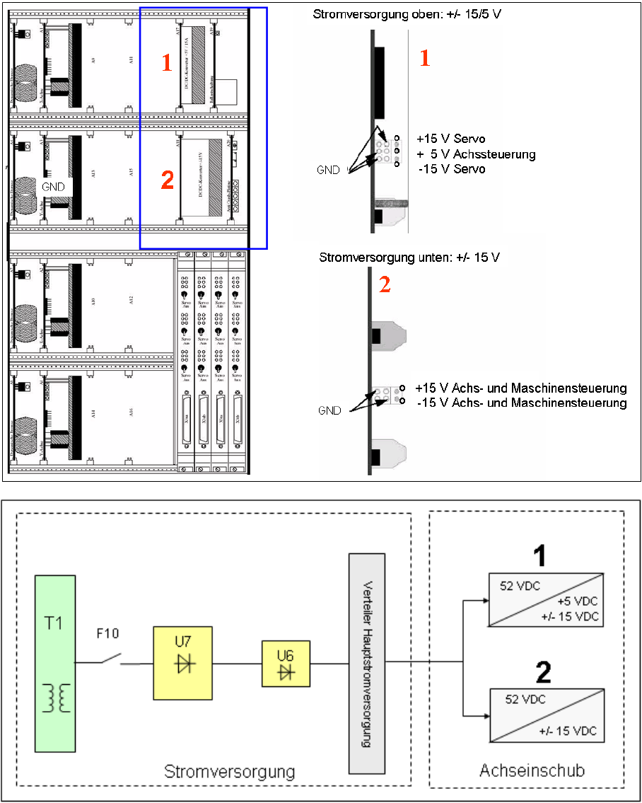 Die Spannungsversorgung +/-15 V und 5 V für die elektronischen Schaltungen der Axis Unit werden von