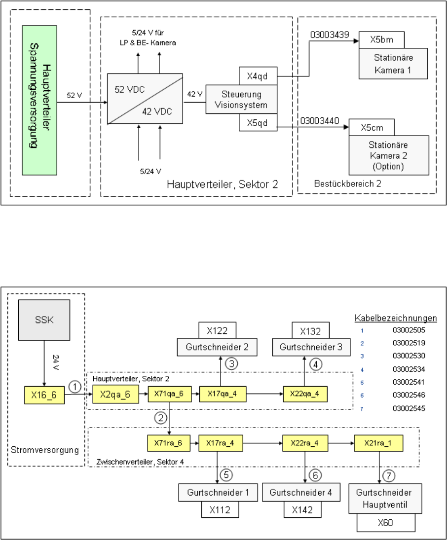 Hauptverteiler X4qa (Sektor 2) an die Klemmenleiste X1qa geleitet und von dort aus erfolgt die