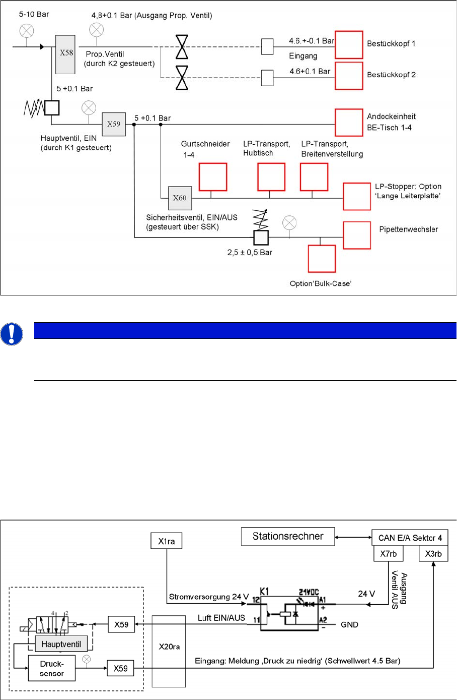 Weg 1: Proportionalventil X58 zur Regelung von 4,8 + 0,1 bar (automatisch geregelt)