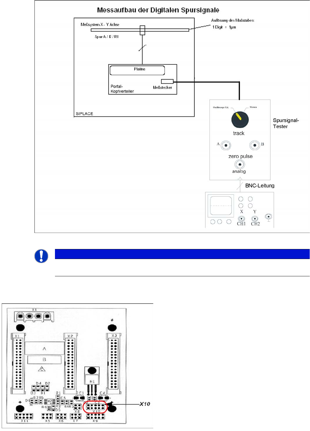 Portal Spursignale und Nullimpuls Überpr üfung Nullimpuls 203 Student Guide SIPLACE X-Serie und X4I FSE Messaufbau für die Überprüfung de s digitalen Nullimpul ses und d er digitalen Spursignale X10 am P ortalinterface f…