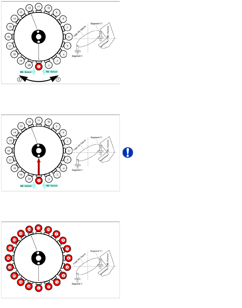 ▪ Mit dem Referenzlauf der Stern-Achse drehen die DP-Antriebe die Segmente nochmals in die 0°-