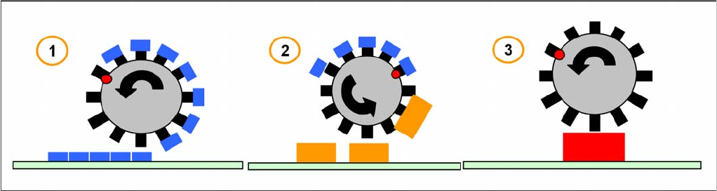 2. Collect&Place-Mode (mit ausgelassenen Segmenten) für Bauelemente mittlerer Größe