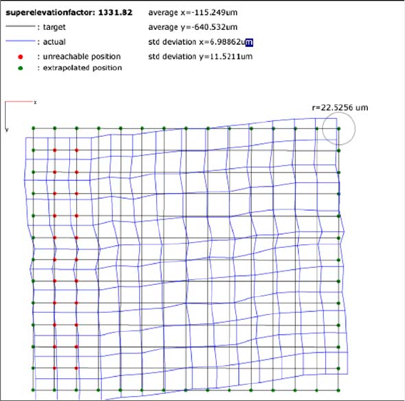 Mit dem Kopf-Mapping wird die Linearität der X- und Y-Linearführungen des C&P-Kopfes gemessen,