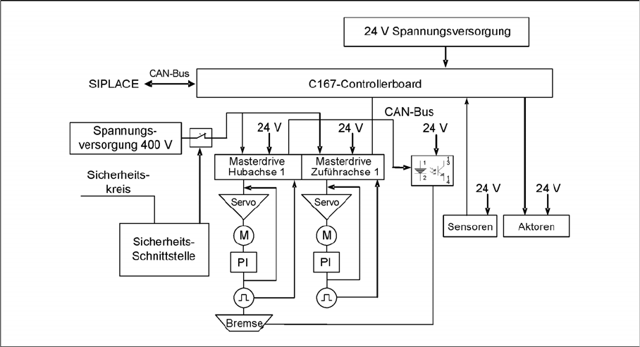 Sicherheitskombination und somit die 400 V der Umrichter für die Masterdrives.