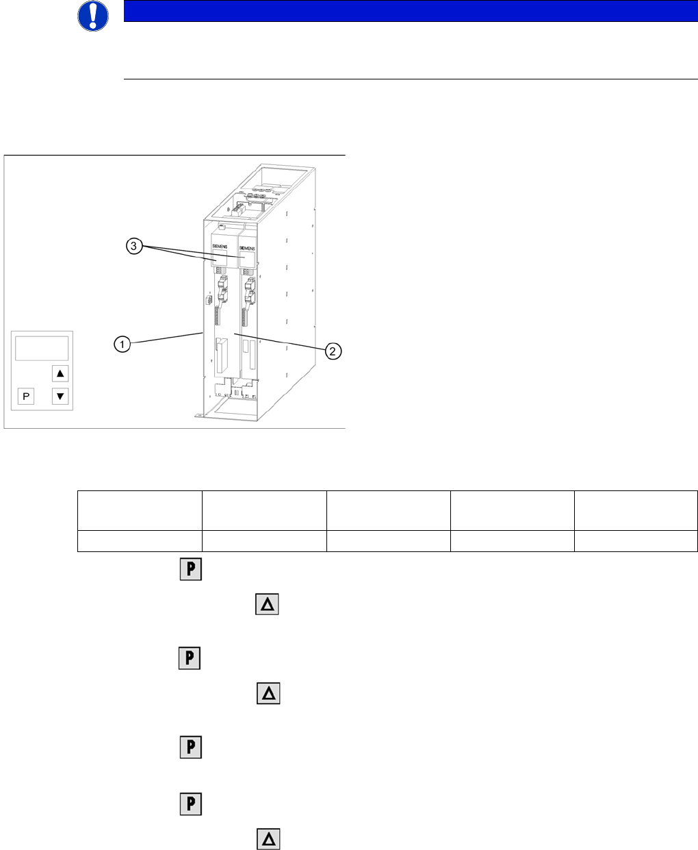 ► Steppen Sie so lange mit , bis auf der Sieben-Segment-Anzeige P060 zu sehen ist. Dies ist die