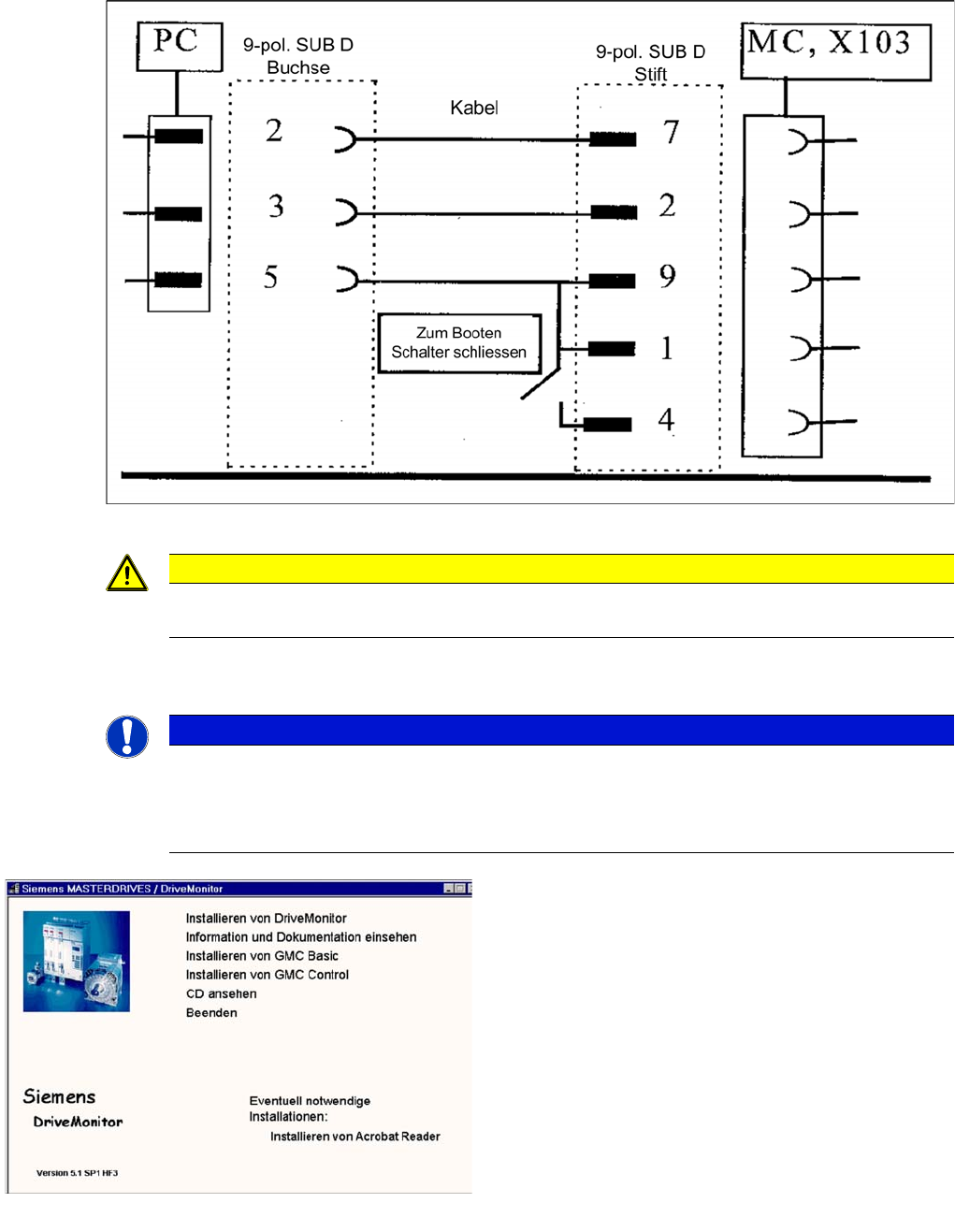 Kabelkonfiguration für die Verbindung zwischen Laptop und Masterdrive