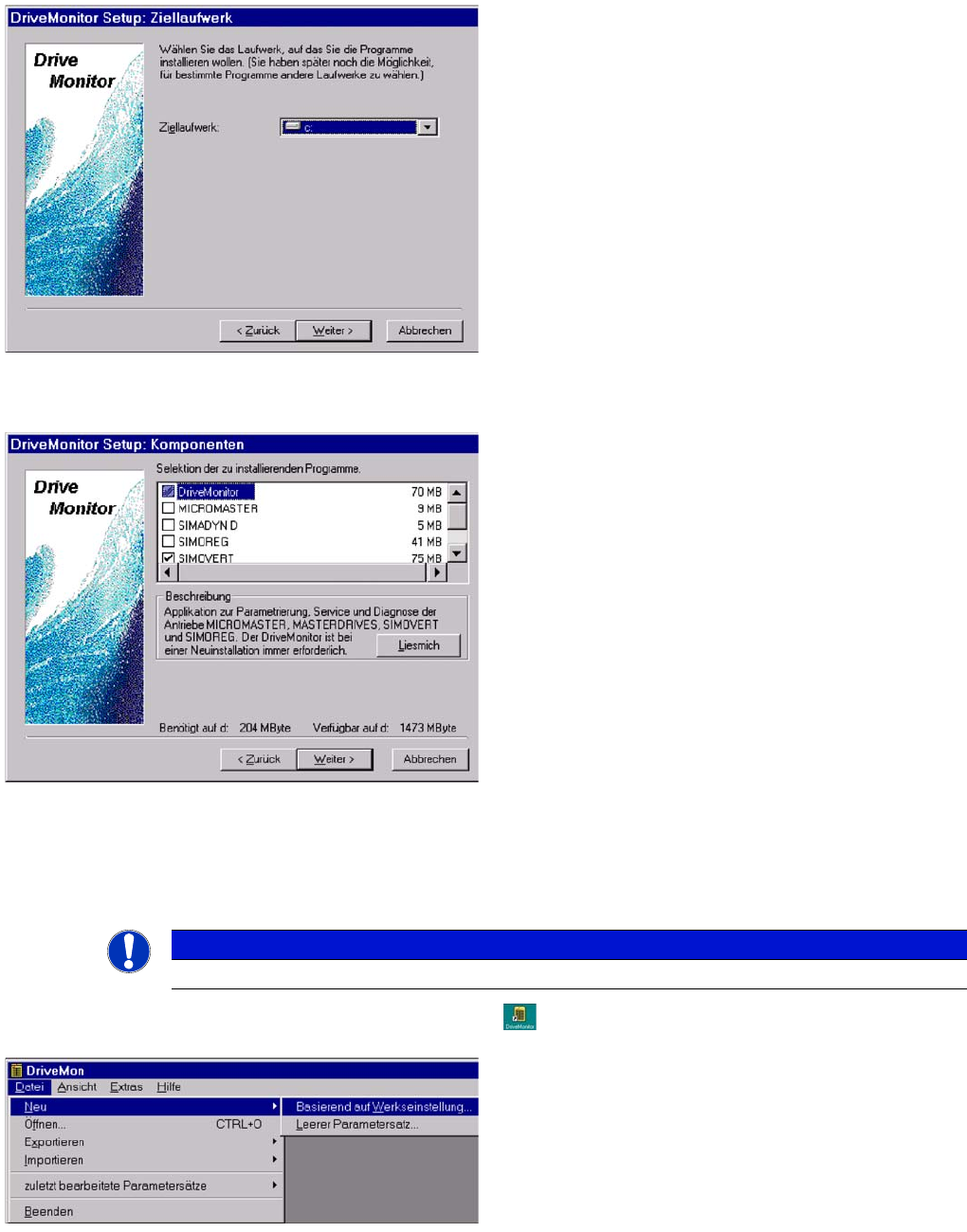 Vor der Installation eventuell ein Verzeichnis mit dem Namen Parametersätze anlegen.