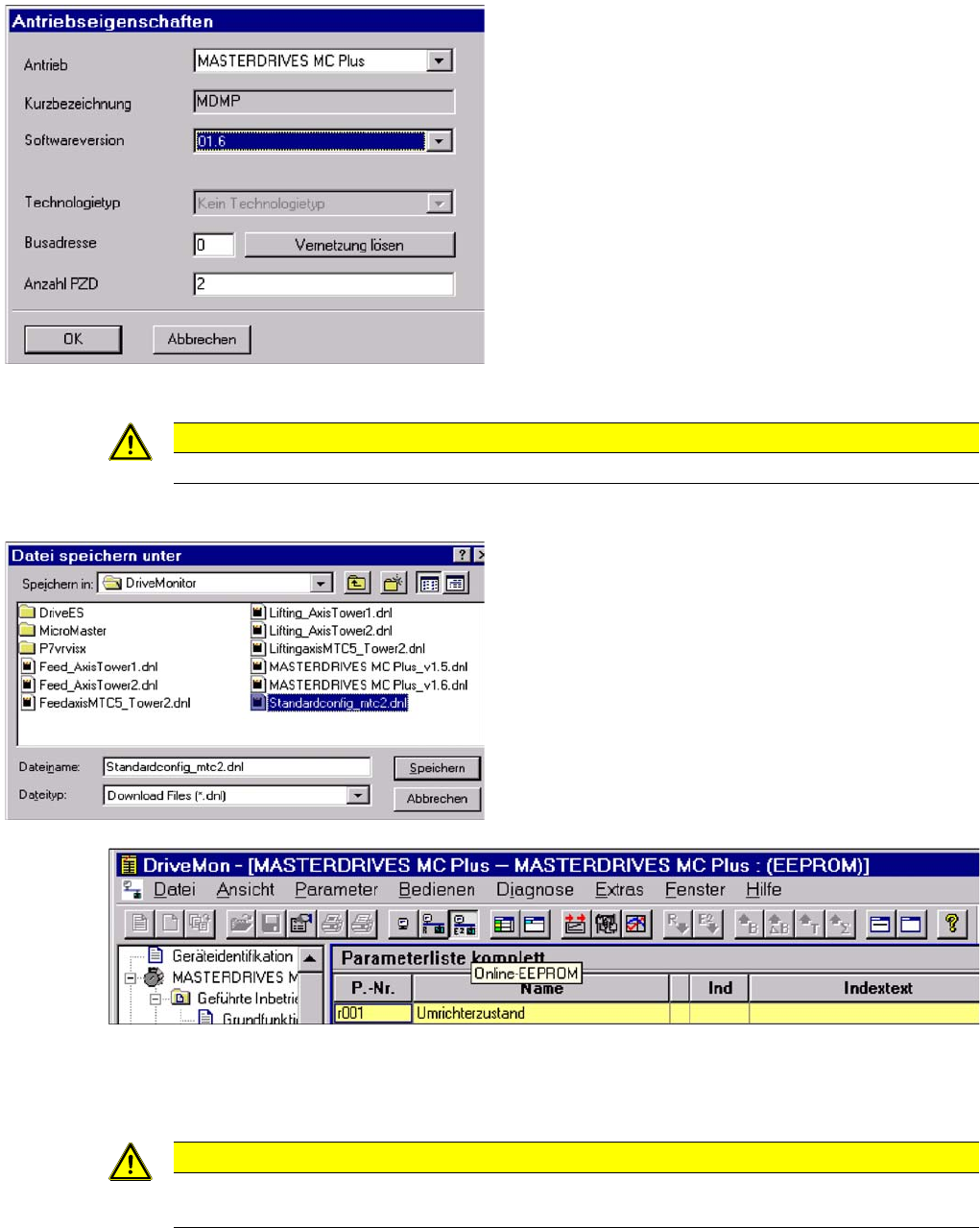 Bevor der Download gestartet wird, sollte der Masterdrive auf Werkseinstellung zurückgesetzt