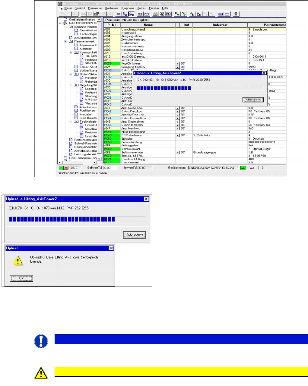 Upload Parametersatz (Sicherung des Parametersatzes)