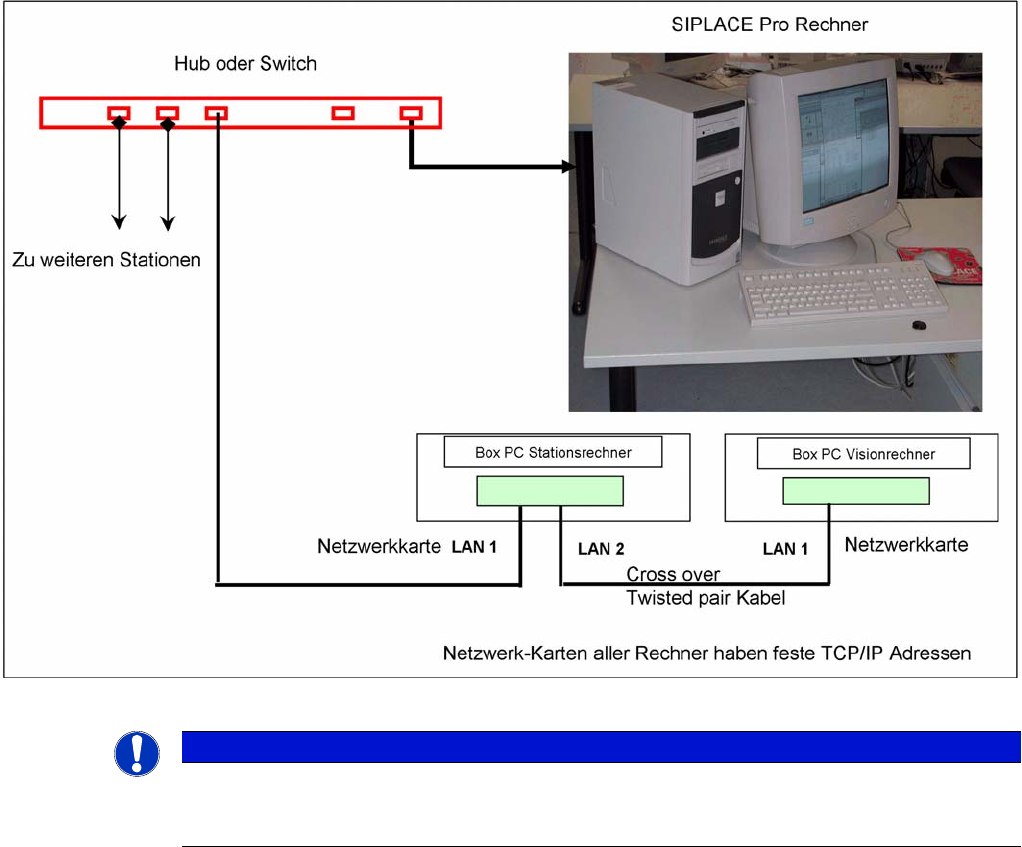Die Vernetzung zwischen Stationsrechner und SIPLACE Pro erfolgt über den LAN 2-Anschluss der