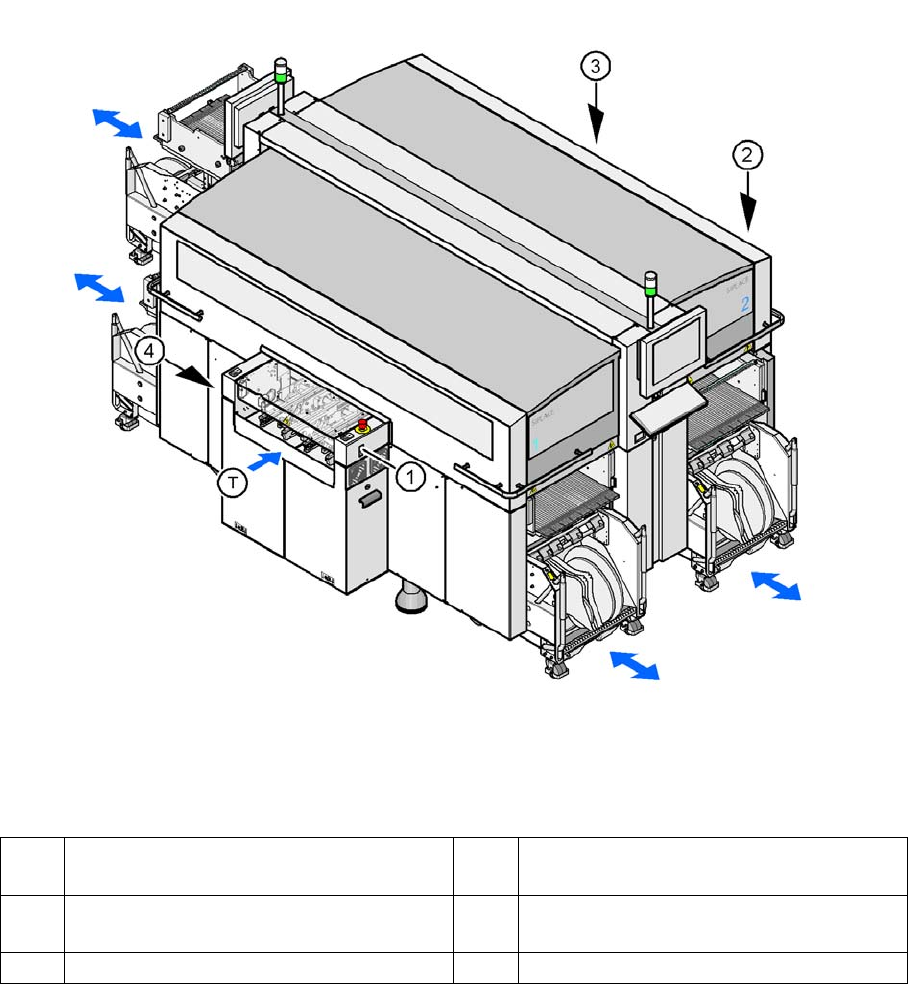 An der X-Maschine können bis zu vier fahrbare BE-Wechseltische angedockt werden. Die BE-