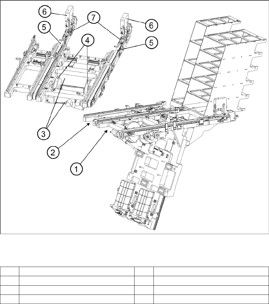 Übersicht über die Zuführachsen (Abdeckbleche und Riemenabdeckungen entfernt)