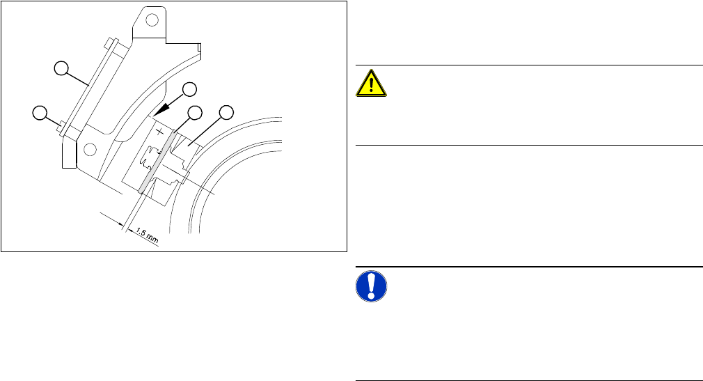 ► Carefully push the rotary encoder towards the incremental disk and along the stop edge (A) until the