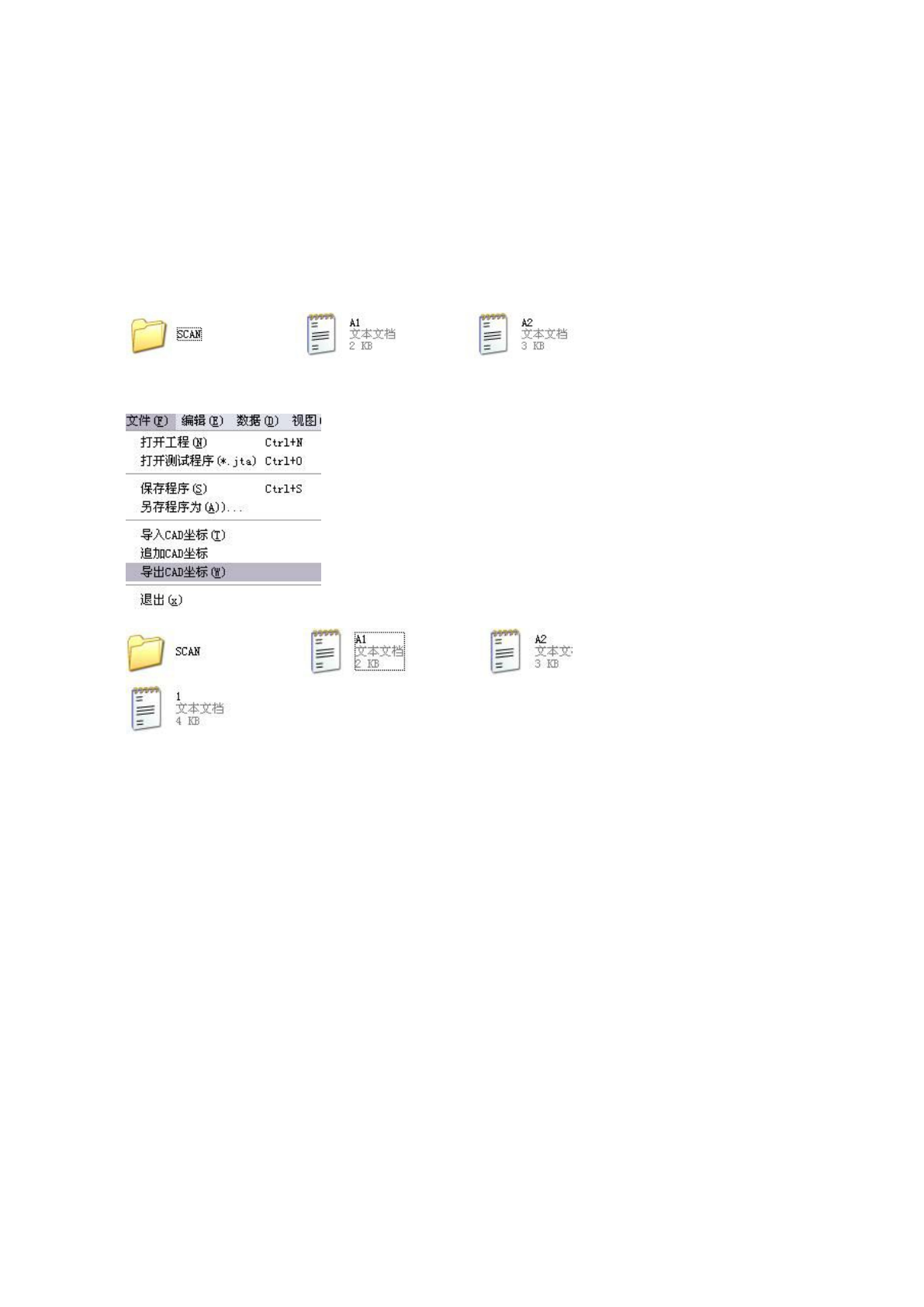56 附录 3 :追加 CAD 坐标的应用 追加 CAD 坐标:针 对解决阴阳板 等某些需要导入两 次甚至更多次坐标 的 AOI 编程 问题, 以下是追加 CAD 坐标 的简单操作。 1 : 在扫描完整 板图片后, 有两个坐标供我 们使用, 其中 A1 为 贴片机 1 提供的坐标, A2 为贴片机 2 提 供的 坐标。 先把坐标 A1 导入程序,核 对图像与 CAD 数据 一一对应后导出 CAD 坐标 导出的 CAD 坐标这里 用 1 …