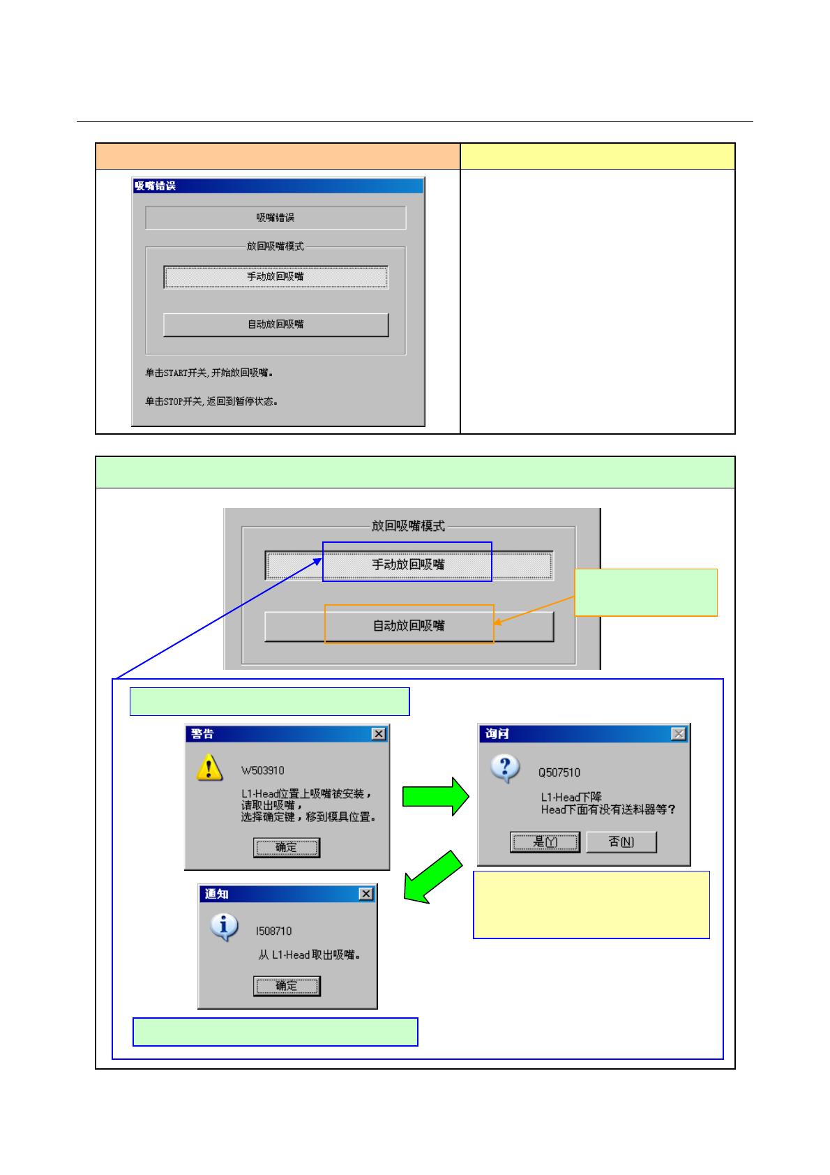 手动放回吸嘴时,请按提示取出吸嘴。