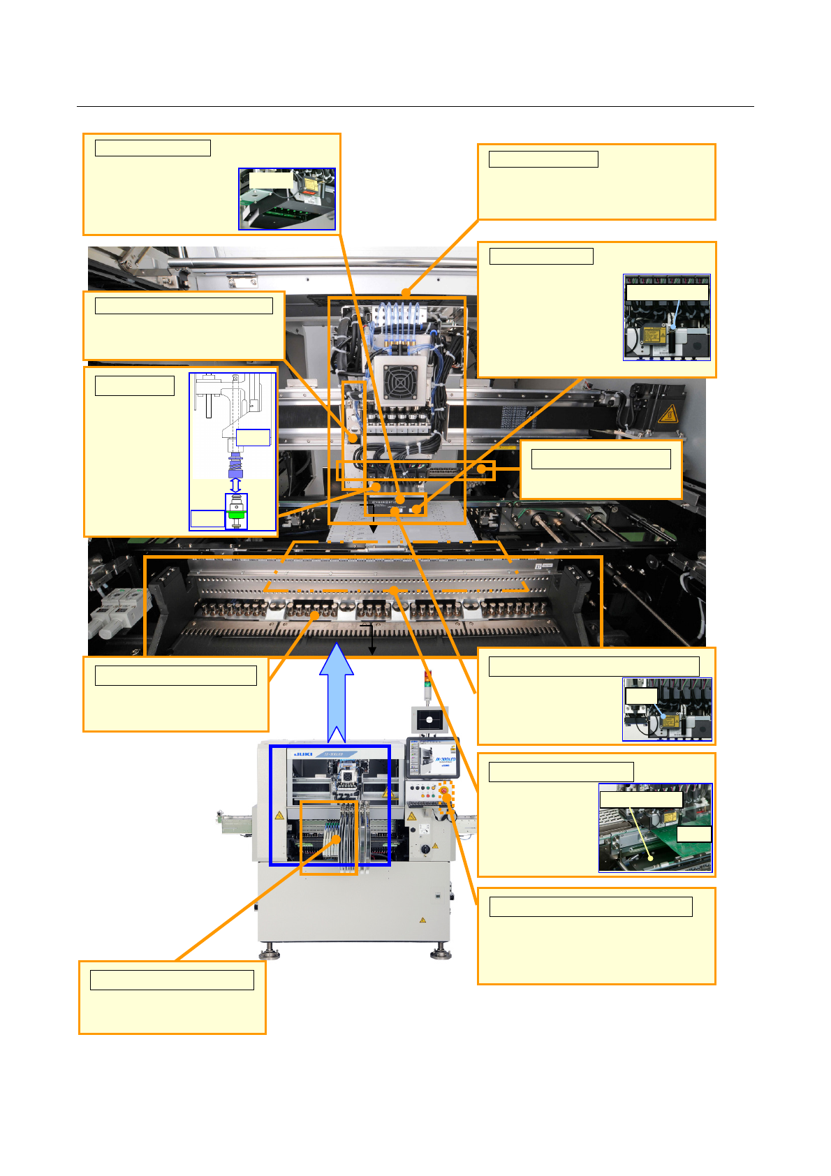 操作手册 用语集 AT C ( AutoT oolChanger ) 存放吸嘴的单元。 吸嘴 ( Nozzle ) 安装在贴片头 ( LNC60 或 IC ) 端部吸取元件用 的单元。 HEAD 吸嘴 OCC ( OffsetCorrectionCam era ) 用于确认基板上的标 记、对准贴 片坐标位置的摄像机。 坏板标记识别器 对破裂基板,可用此 传感器识别出不良基板 (电路)的标记(坏板 标记) 。避免在有坏板 标记的电路上进行…