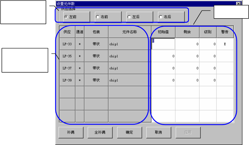 元件数量的设置,要在吸取数据中设置了元件供应单元(带状送料器、管状送料器、散装送