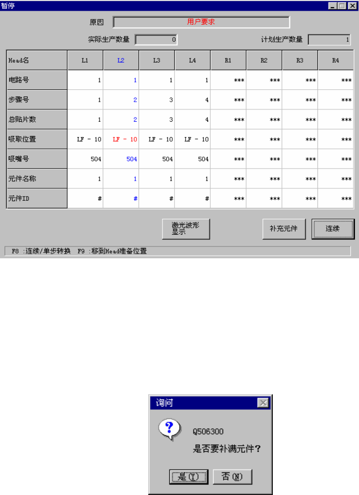 对话框中显示的[步骤号]为未贴片号码,即下次生产时的开始步骤位置。
