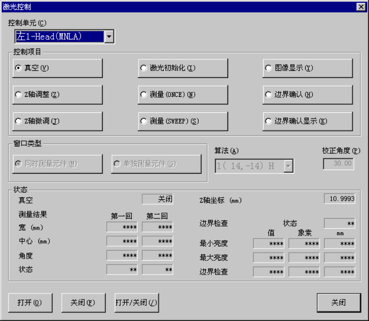 在菜单栏中选择[控制]→[Head]→[激光控制]后,显示下图的激光控制对话框。