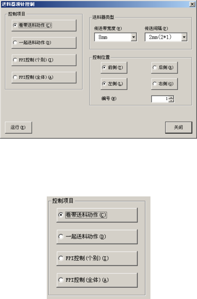 在控制项目中选择[卷带送料动作]时,用单选按钮选择控制位置,在编辑框内输入编号。