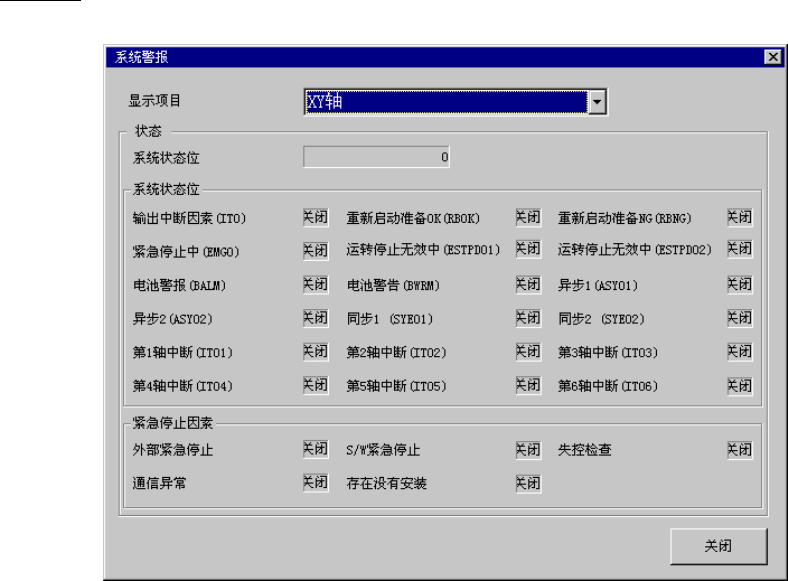 按下驱动状況对话框中的[系统警报]按钮后,显示如下画面。