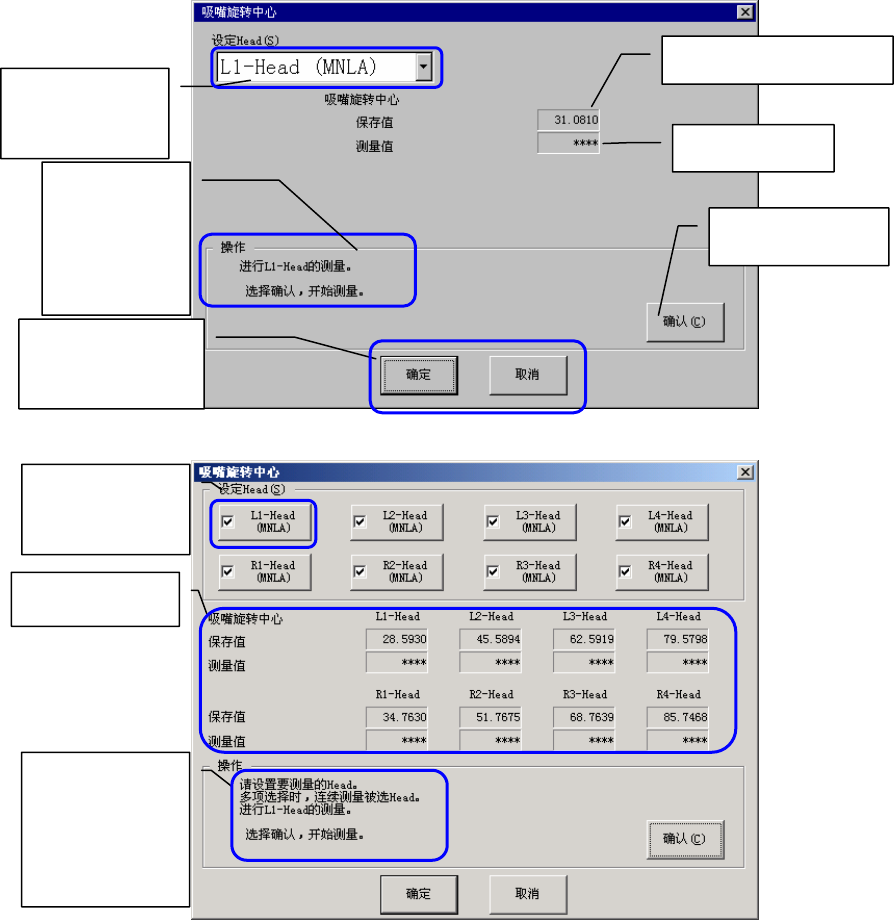 图 13.2-6 [吸嘴旋转中心] 对话框(上:FX-1 下:FX-1R)