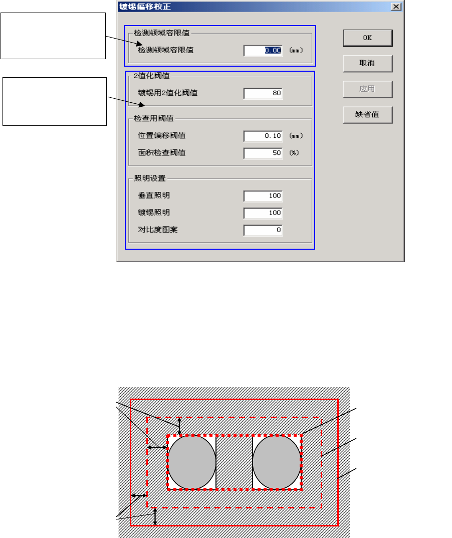 通过“设置组”-“设置镀锡偏移校正”的“设置检测领域容限值”设置检测范围的