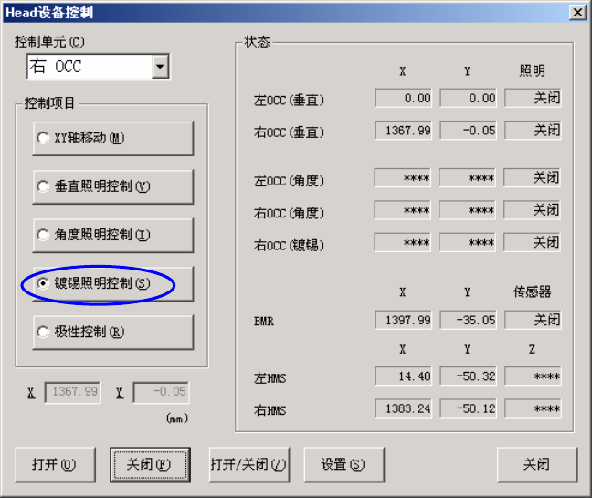 可通过手动控制的“Head 设备控制”-“镀锡照明控制”,进行手动控制,操作本项功