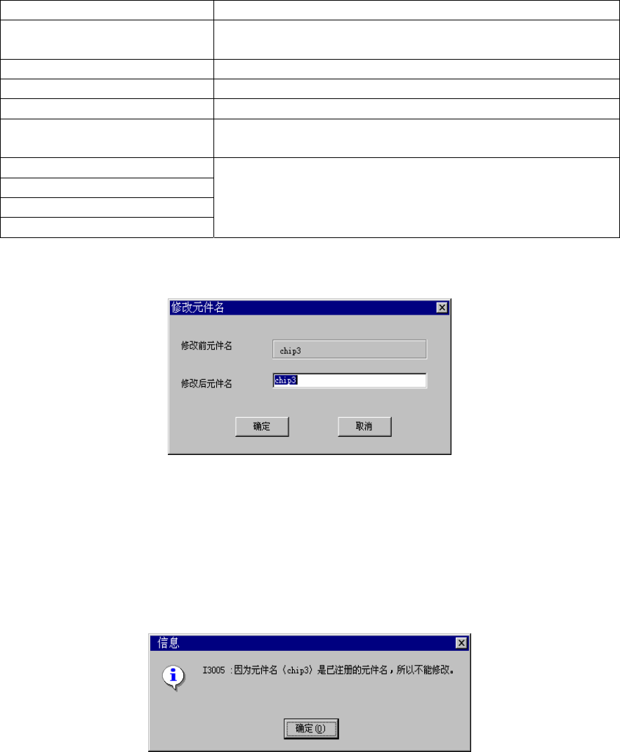 z 修改后的元件名与其它元件名重复时,会出现下图对话框提示不能修改。