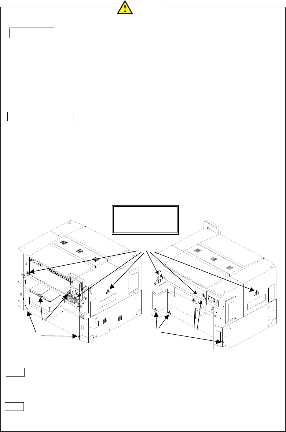 3. 贴在机器上的警告标识,请正确粘贴,使之醒目可见。若发生剥落或污损,请与本公司联系,换成