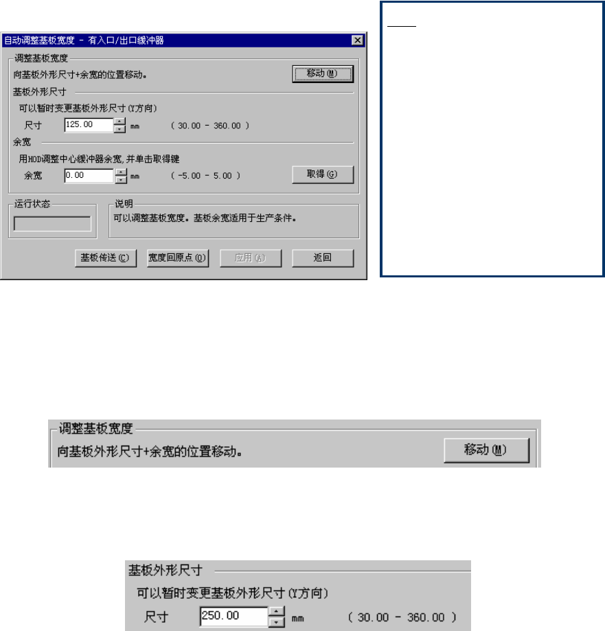 把传送宽度移至基板外形尺寸+余宽的位置。执行时的传送宽度值适用下列设定值。
