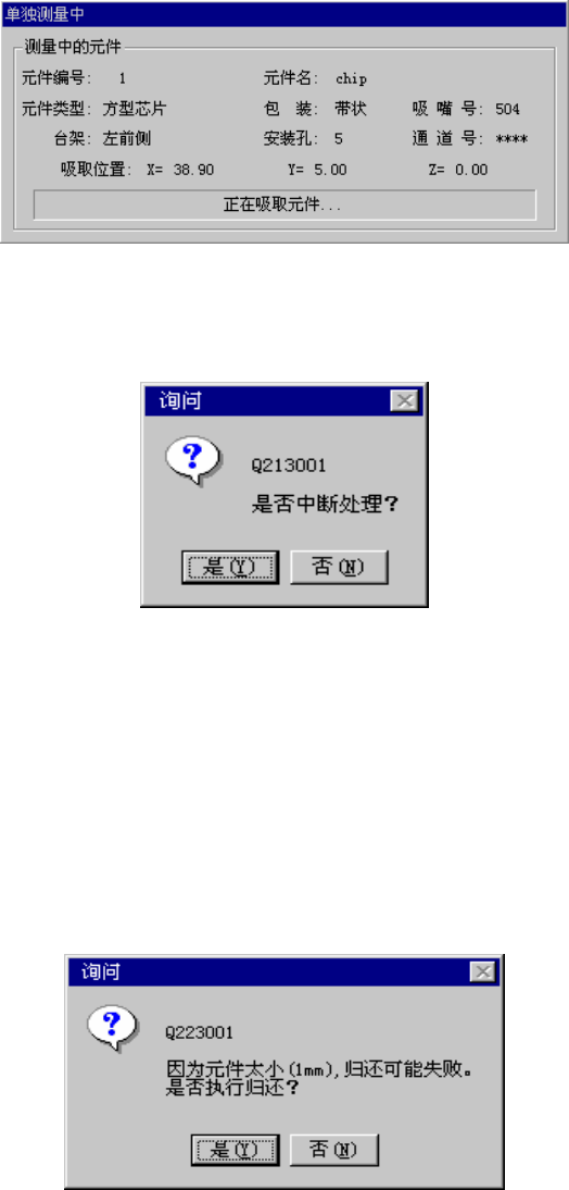 测量时逐项显示元件的内容、吸取位置、执行中的处理内容。