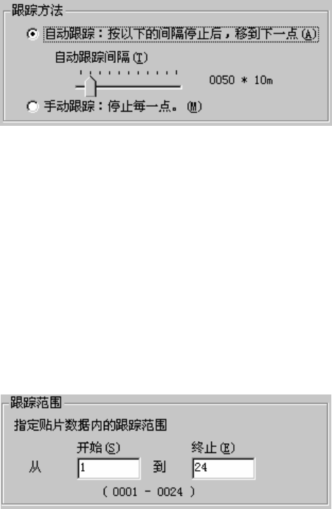 指定贴片数据内的跟踪范围(从第几点到第几点)。