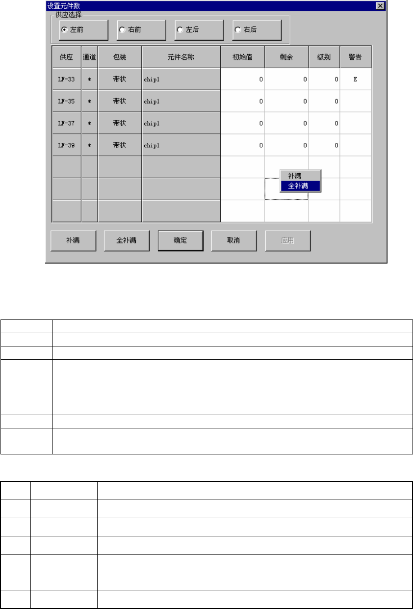 元件数量的设置,要在吸取数据中设置了元件供应单元(带状送料器、管状送料器、散装送