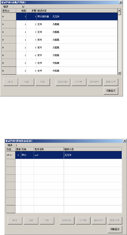 话框。错误列表按发生顺序排列,最多显示 160 件。但当所有的元件都贴片后,如仍有吸取错