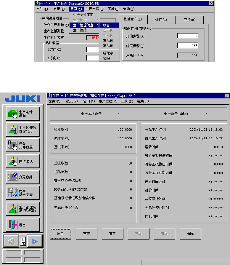 第 8 章 生产 8. 3. 1. 1 基本操作 综合 在菜单栏中选择[窗口]→[生产管理信息] →[综合]后,显示 图 8. 3-2 生产管理信 息 (综合) 。 图 8. 3-1 生产管理信息 (综合) 菜单 图 8. 3-2 生产管理信息 (综合) 8-48
