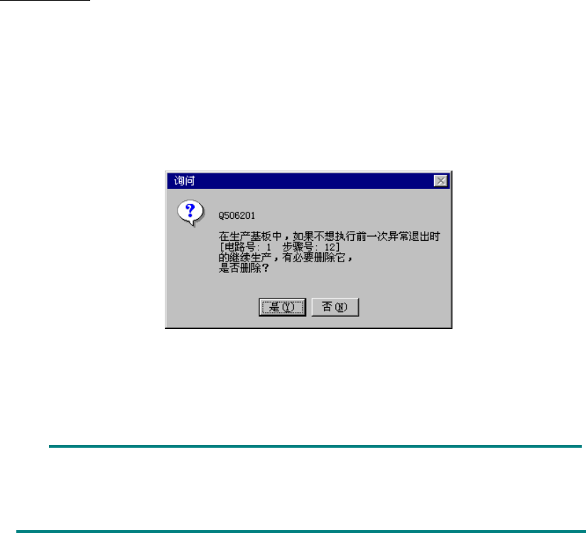 选择“是”时,继续生产数据即被删除,不能执行上次异常终止时的“继续生产”。