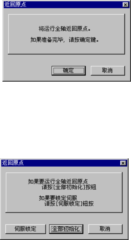 在启动时,或在不可能执行继续返回原点时,按下<ORIGIN>开关,显示如下返回原点画面。