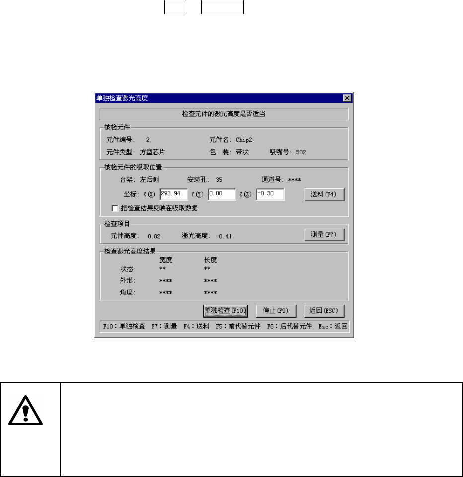 在连续检查中出现错误,进入单独模式时,会显示以下的 [单独检查激光高度] 对话框。