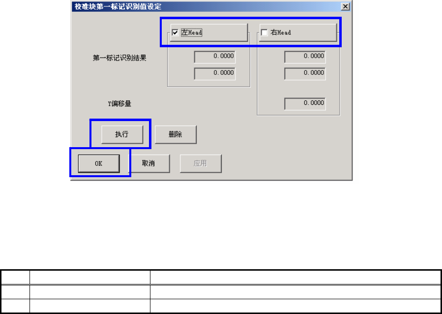 在[校准块第一标记识别值设定]对话框中的设置内容如下表所示。