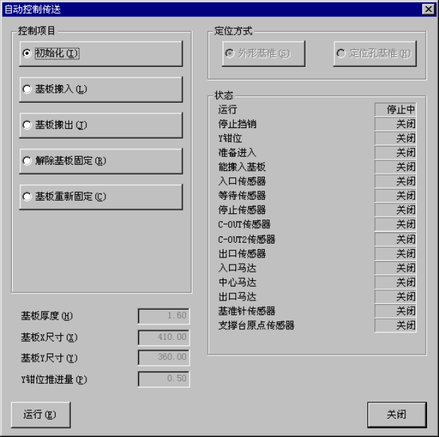 选中控制项目[基板搬入] 时,选择[运行]按钮,或按[F3]键来控制。