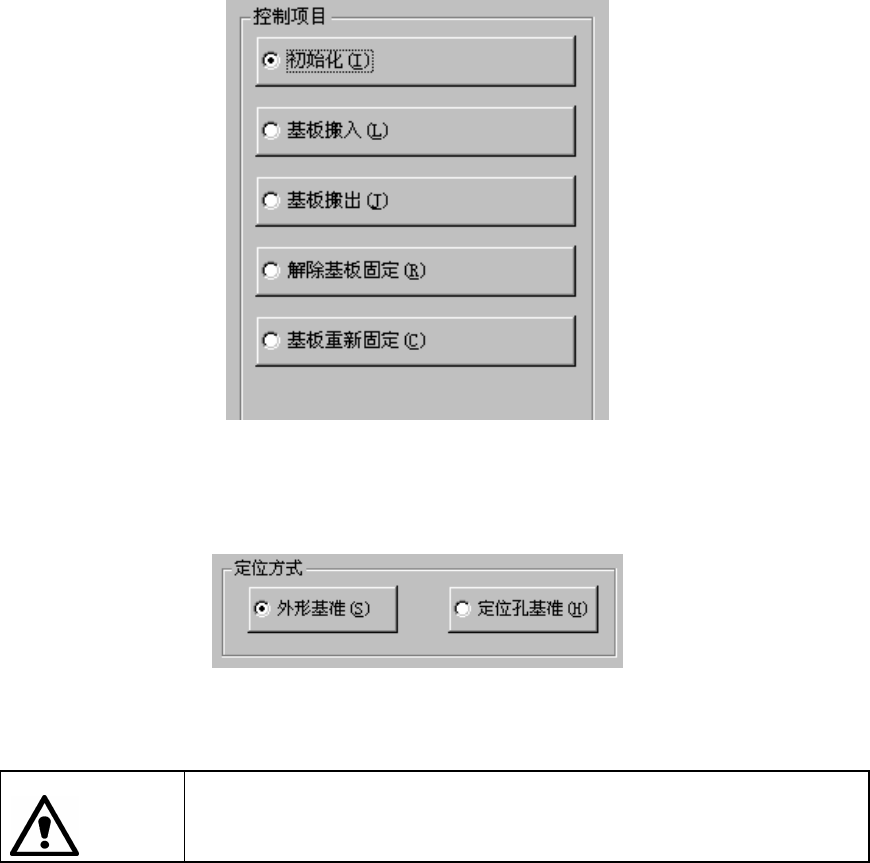 在控制项目中选择了[初始化]、[基板搬出]、[解除基板固定]时,无法设定定位方式。