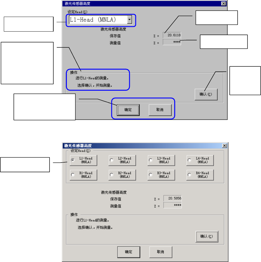 图 13.2-1 [激光传感器高度]对话框(上:FX-1 下:FX-1R)