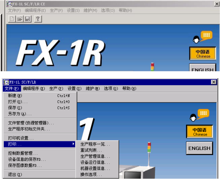 上图示例:要打印“生产程序一览”时,依次单击[文件]→[打印...]→[生产程序一览...]即可。