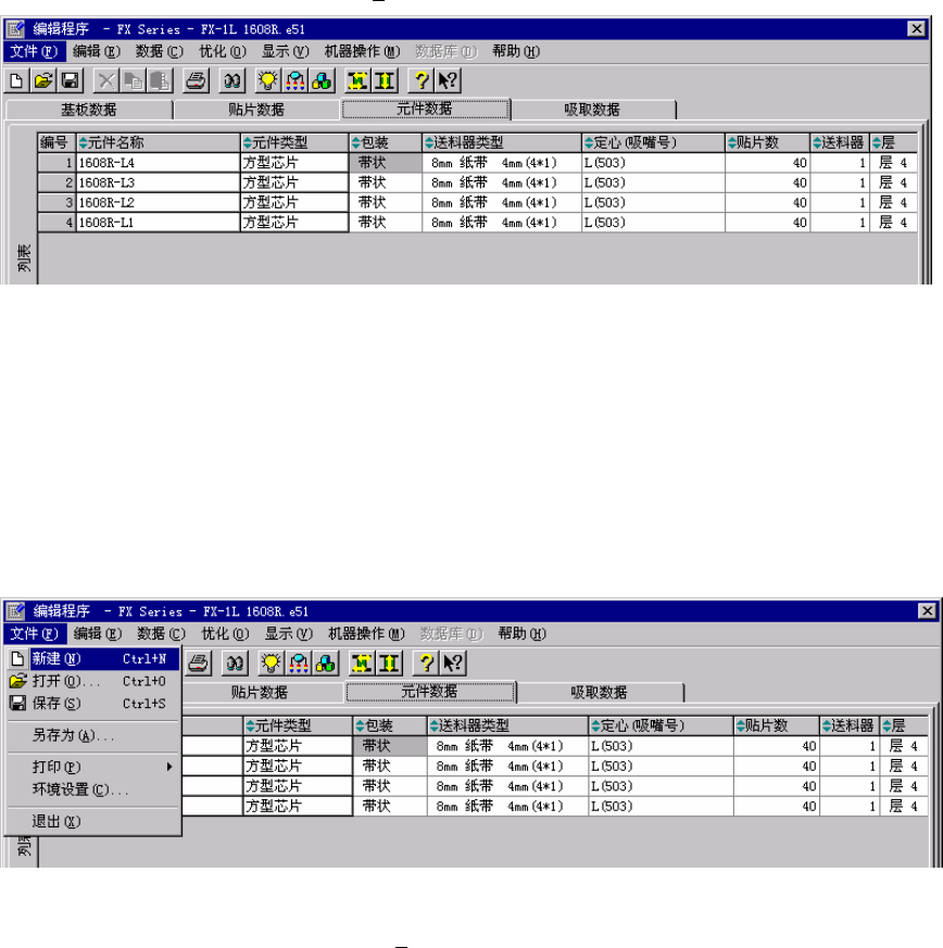 第2章 基本操作 ②从键盘输入命令项目 用键盘选择命令有两种方法:1.选择菜单命令,操纵箭头键,依次选择。 2.用快捷键选择。 现以生产程序编辑画面示例说明如下: 按下[ Alt ] 键,激活菜单栏,[文件( F )]菜单高亮显示。 图 2.4-2 激活菜单栏 (1) 按箭头键,选择命令项目: 按[→] 键或[←]键,在菜单栏移动,选择菜单。 移动到目标菜单时,按[↑] 键或[↓] 键,可弹出下拉菜单。 在下拉菜单上按 [↑] 键或[↓…