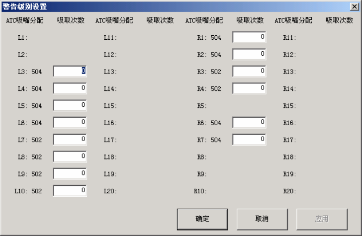 4 警告级别 显示各 Head(贴片头)(L1~L4/R1~R4)警告级别。