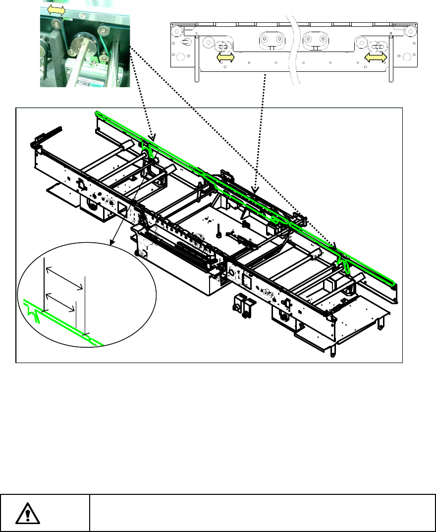 1)放松安装在 A 部长孔的「(前后 2 个)传送皮带轮」,放松传送带紧度。