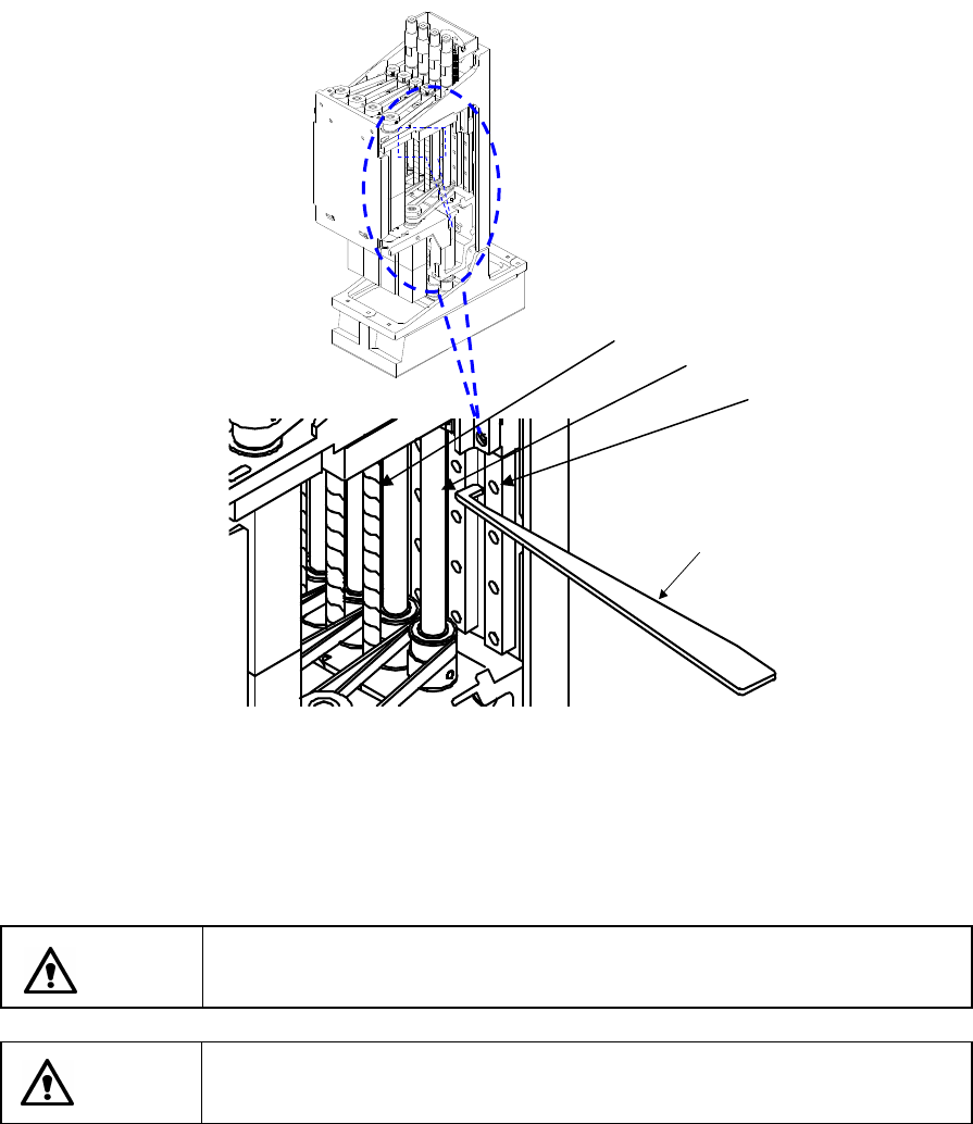 第 16 章 维护 16-28 16.4.6 滚珠丝杠和直线导轨(贴片头部分) 请在「滚珠丝杠①」和「直线导轨③」的轨道上涂抹薄薄一层润滑脂 (C 润滑脂)。 请在「花键轴②」上涂抹薄薄一层润滑脂(C 润滑脂)。 难涂润滑脂的地方(特别是隐藏在直线导轨内的轨道面),请用附件润滑脂棒涂抹。 将 Z 轴上下 滑动让润滑脂涂抹均匀,为防止飞散,请擦掉多余的润滑脂。 グリスバー 图 16.4-8 润滑脂涂抹位置 ①滚珠丝杠 ②花键轴 ③直线导轨…