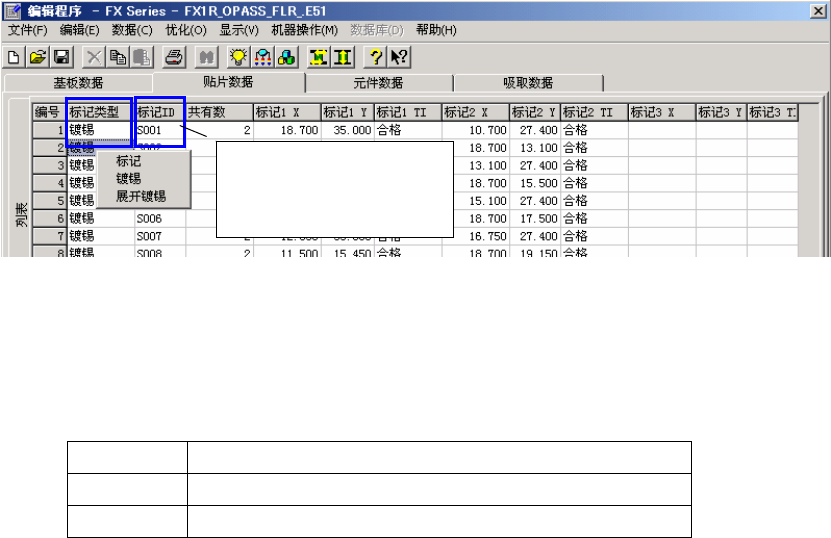 把光标对准区域基准标记数据的标记类型,点击鼠标右键选择标记类型,以示